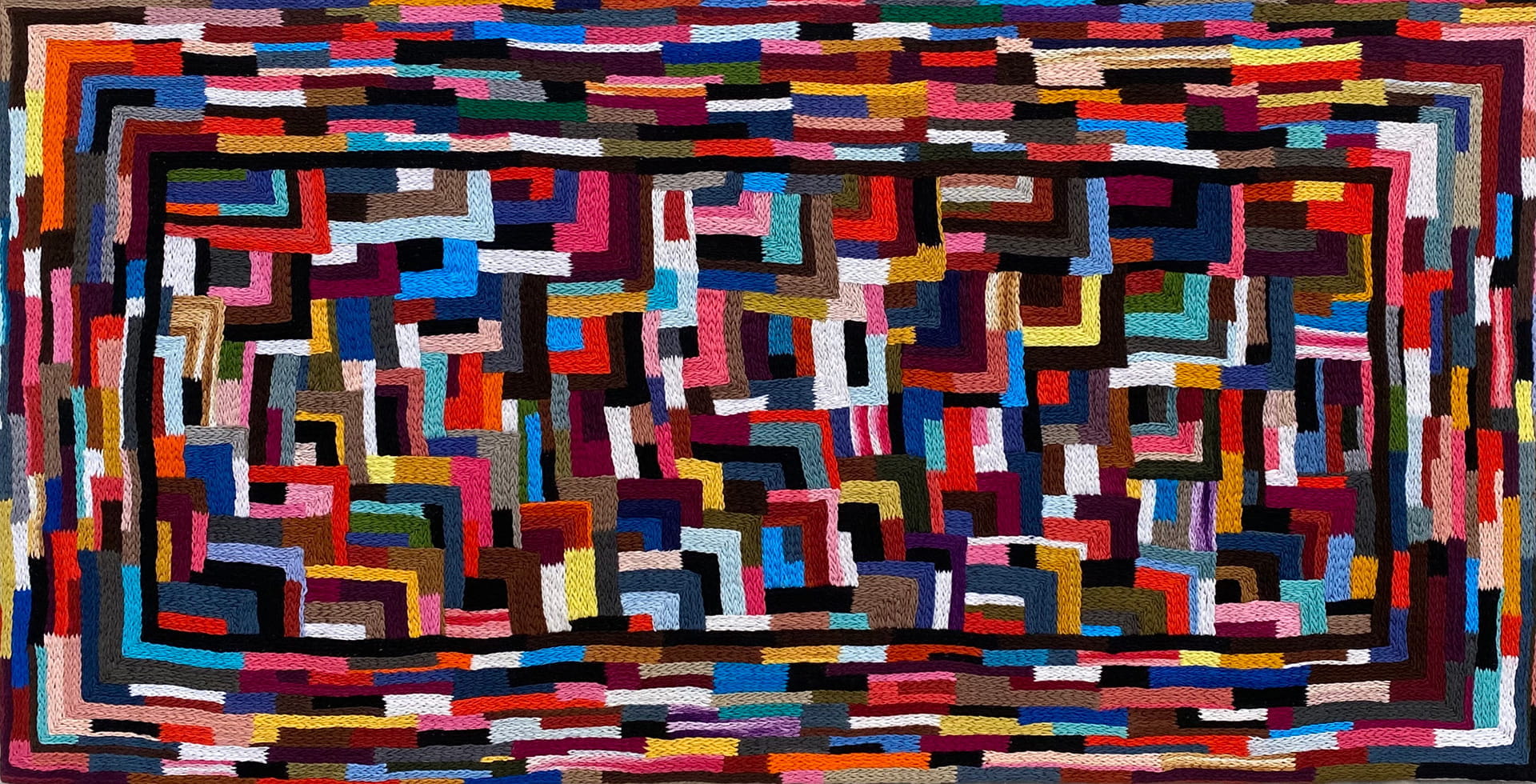 Previously presented at the Vancouver Art Gallery in the solo-exhibition Soul Power (July 2021 – March 2022) and reproduced for Carry It Well, Breathe is a large-scale embroidery work featuring over seventy hand-stitched panels. For Jan Wade, time and embodiment are necessary elements of creation. Created over an 11-year period between 2009-2020, the vibrant abstract work took on new meaning in 2014 following the killing of Eric Garner in a prohibited chokehold by a police officer in New York City. Breathe became a mantra, a spell, and a meditation to sustain the artist's life. "Every stitch is a new breath, an acknowledgment of the unacknowledged, an honoring of the work of women makers, and a daily reminder that the miracle of breathing should never be taken for granted" (Wade).