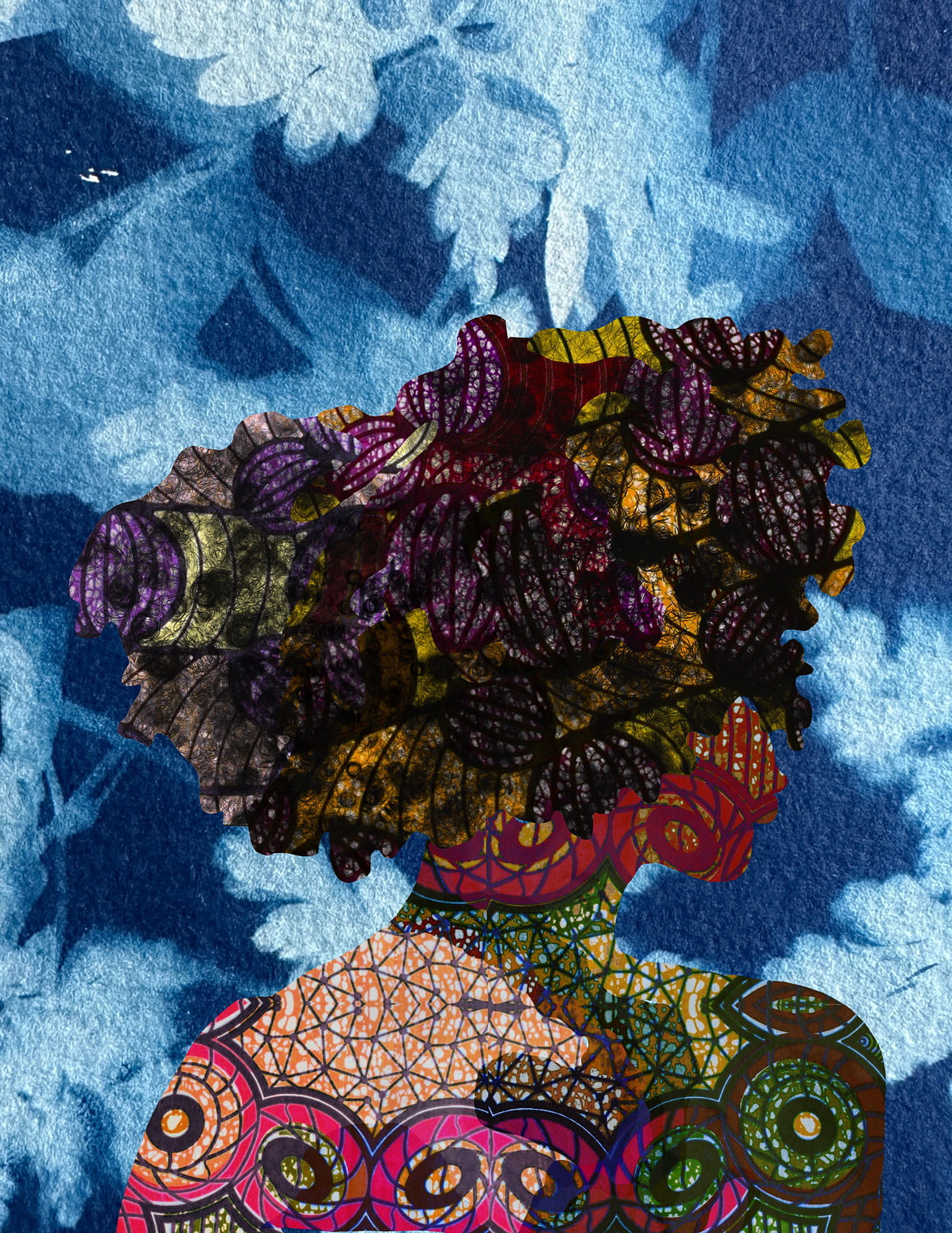 Natoya Ellis has created a series of eight artworks that foreground the hybridity and connectivity of the Afro-diaspora living in the region. Foliage native to the Chinatown area is juxtaposed with a variety of fabric patterns in these cyanotype prints and digital illustrations. Woven Consciousness intricately blueprints the fabric of our lives, intimately mirroring diverse embodiments of Black presence, and communicating a visual language of familiarity and humanization. Bandana, Kente, Ankara, Lamba, Madras, and Netela prints move across the illustrations and silhouetted figures in a lively recognition of tradition, heritage, and modernity. Woven Consciousness invites viewers to explore the subtleties of identity, belonging, and the cultural richness that characterizes Vancouver's Black community. The series fosters a greater appreciation for the layered tapestry of Black culture within the diverse social fabric of the city.